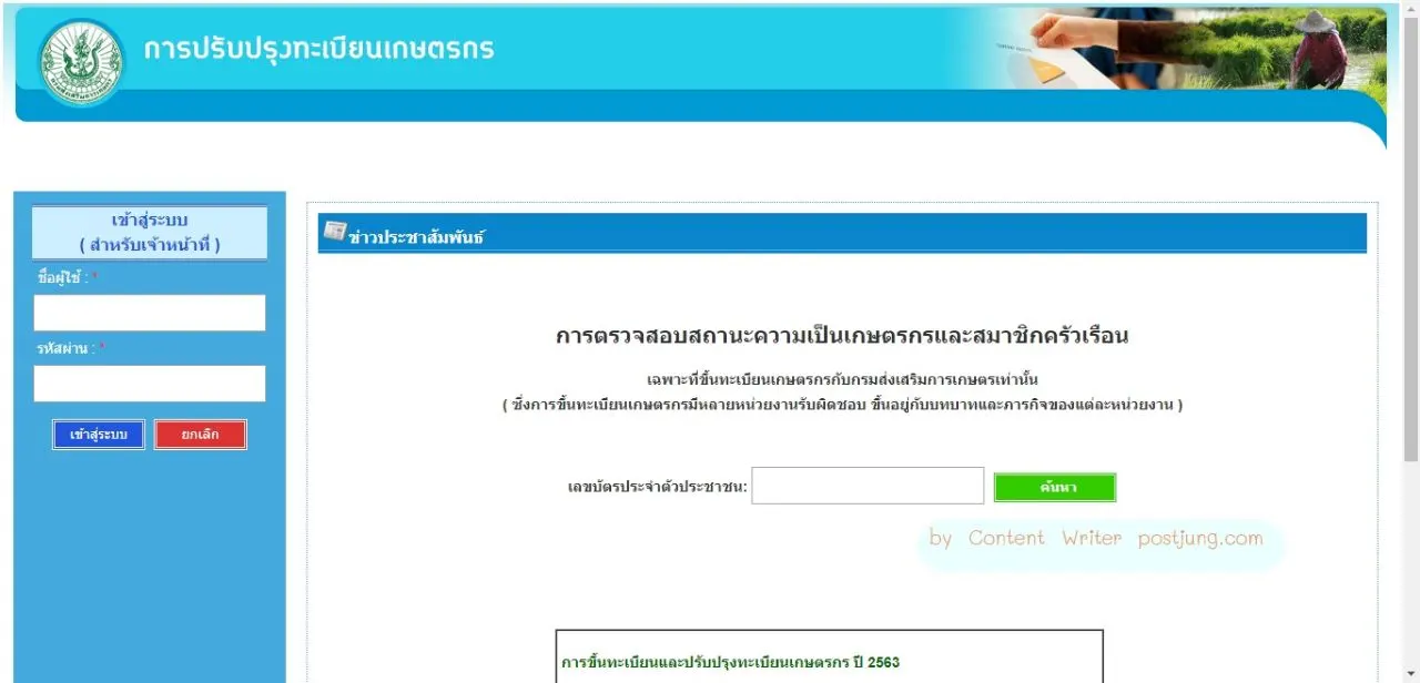 เข้าไปที่เว็ปไซต์ http://farmer.doae.go.th/ แล้วกรอกเลขประจำตัวประชาชนลงไป