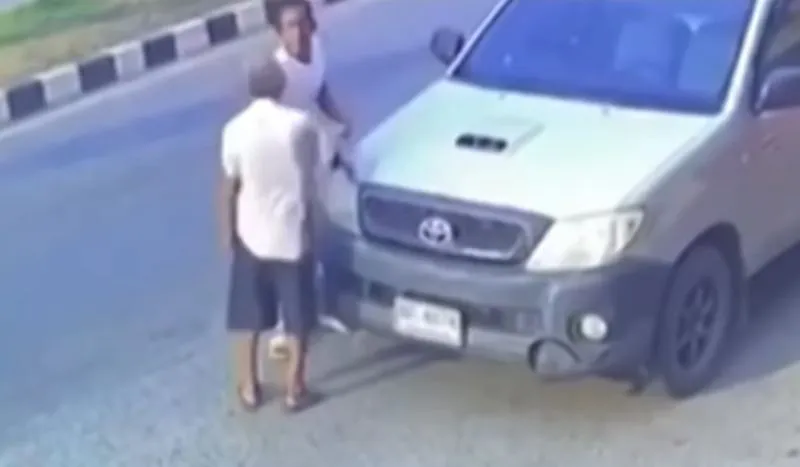 โดย นายบัญชา ดิษฐาพร อายุ 92 ปี ข้าราชการบำนาญ ถอยหลังรถยนต์ออกจากที่จอดเพื่อเดินทางกลับบ้าน ก่อนถูกนายแบงค์ อายุ 28 ปี หนุ่มหัวร้อน ที่เดินลงมาจากรถ มีปากเสียงกับนายบัญชา และผลักอกนายบัญชา จนล้มหงายท้องนอนแน่นิ่งกับถนน สุดท้ายนายบัญชามีอาการเลือดคั่งในสมอง พักรักษาตัวที่โรงพยาบาลพุทธโสธร ตั้งแต่วันที่ 15 เมษายน ทีผ่านมา