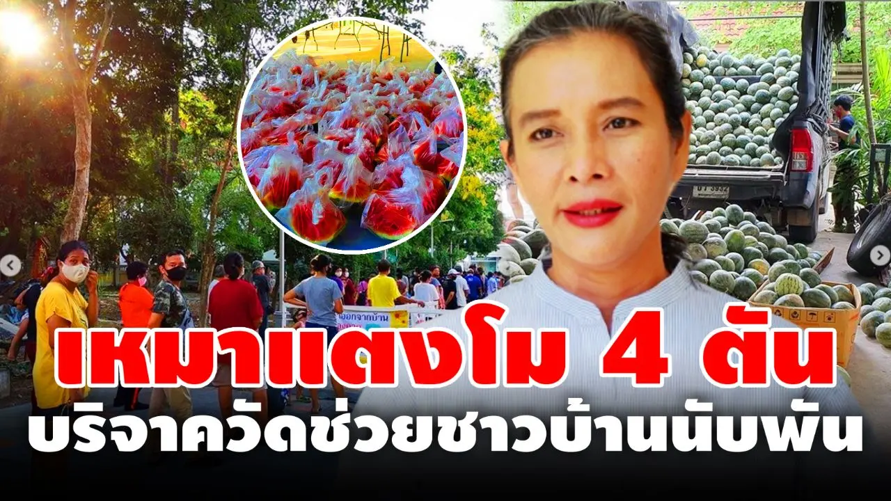 "ชุ ชุดาภา" เหมาแตงโมชาวสวน 4 ตัน แจกโรงทาน ชาวบ้านและวัด