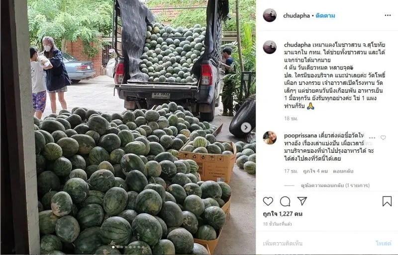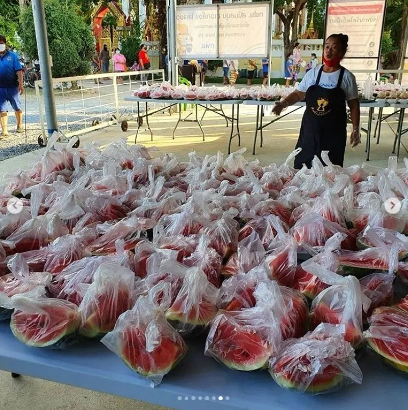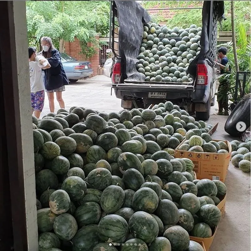 เหมาแตงโมชาวสวน จ.สุโขทัย มาแจกใน กทม. ได้ช่วยทั้งชาวสวน และได้แจกจ่ายได้มากมาย 4 ตัน วันเดียวหมด หลายจุด ปล. ใครมีของบริจาค แนะนำเลยค่ะ วัดโพธิ์เผือก บางกรวย เจ้าอาวาสเปิดโรงทาน วัดเล็กๆ แต่ช่วยคนวันนึงเกือบพัน อาหารเย็น 1 มื้อทุกวัน ยังรับทุกอย่างค่ะ ไข่ 1 แผง ท่านก็รับ