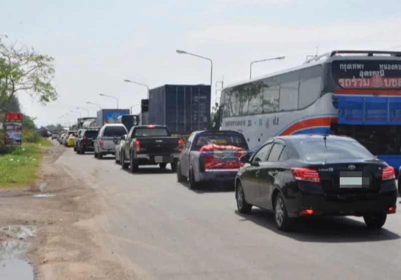 โดยเฉพาะ เวลา 14.30 น. ที่บริเวณถนนบายพาส ต.จอหอ อ.เมืองนครราชสีมา เกิดอุบัติเหตุรถพ่วงบรรทุกปูนเสียหลักลงข้างทาง ส่งผลให้เกิดการจราจรติดขัดยาวกว่า 3 ก.ม.นอกจากนั้นภายในปั๊มน้ำมันยังมีรถยนต์แวะพัก ดื่มกาแฟ เติมน้ำมัน กันอย่างคึกคักอีกด้วย