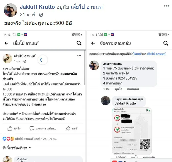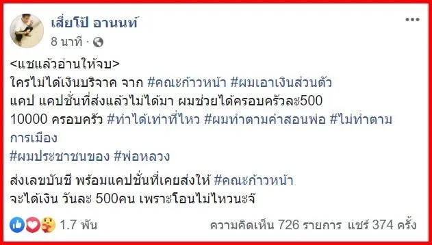 ใครไม่ได้เงินบริจาค จาก #คณะก้าวหน้า #ผมเอาเงินส่วนตัว