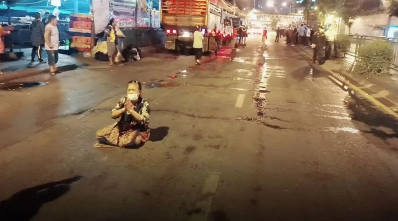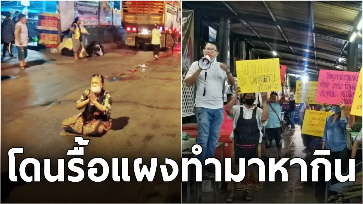 พ่อค้าแม่ค้าสุดทน!! นั่งกลางถนนยกมือกราบไหว้ หลังเทศกิจบุกรื้อแผงทำมาหากิน