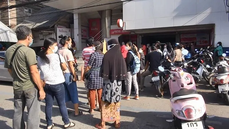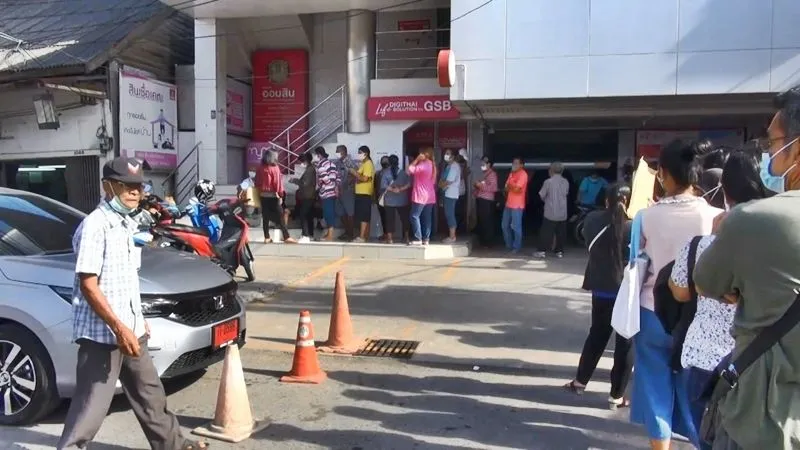 ประชาชนในพื้นที่ จ.สงขลา เดินทางมาถอนเงิน ที่ธนาคารออมสิน