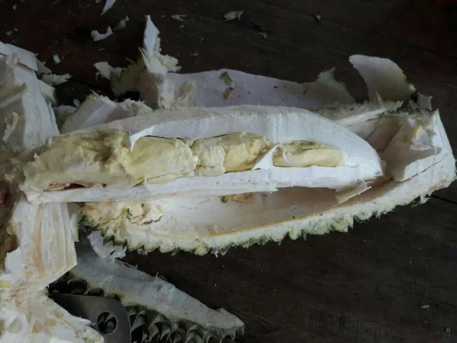ฝีมือการปอกทุเรียนครั้งแรกก็จะเละๆหน่อย