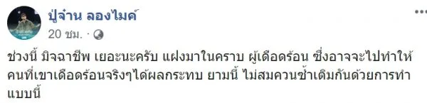 ปู่จ๋าน ลองไมค์ โพสต์ลุงบ้านเดียวกันทำตัวน่าสงสารให้คนช่วย ลั่นยามนี้ไม่ควรซ้ำเติมกัน