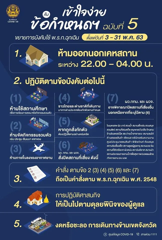 อ่านเพิ่มเติม 👉👉ข้อกำหนด ฉบับที่ 5 http://www.ratchakitcha.soc.go.th/…/P…/2563/E/102/T_0001.PDF