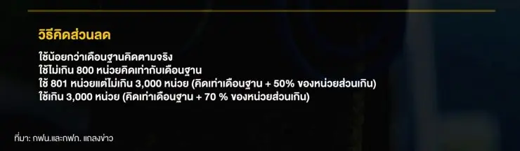 ใช้ 801 หน่วยแต่ไม่เกิน 3,000 หน่วย (คิดเท่าเดือนฐาน + 50% ของหน่วยส่วนเกิน)