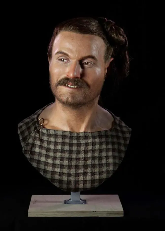 สร้างขึ้นโดยใช้หลักฐานทางนิติเวชที่ได้มาจากการวิเคราะห์โครงกระดูกใบหน้าของชายเลนเดอร์อายุ 25-40 ปี เกิดเมื่อประมาณ 5,500 ปีที่แล้ว