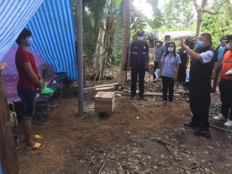 จุดที่ 1 เป็นกระท่อมในสวนยางพาราที่สร้างใหม่ ท้องที่หมู่ 10 ต.คลองน้อย อ.ชัยบุรี พบ น.ส.กมลรัตน์ สัมฤทธิ์ อายุ 30 ปี อาชีพพนักงานงานร้านขายยาใน อ.กะทู้ จ.ภูเก็ต กับนายธนกฤติ เพ็งสกุล อายุ 32 ปี สามีอาชีพรับจ้างบริการทัวร์นักท่องเที่ยว ใน ต.ป่าตอง อ.กะทู้ จ.ภูเก็ต เดินทางออกจาก จ.ภูเก็ต เข้าพื้นที่ อ.ชัยบุรี เมื่อวันที่ 1 พฤษภาคม 2563