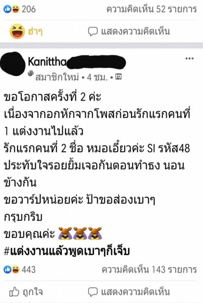กลายเป็นอีกเรื่องราวความรัก ที่ทำเอาชาวโซเชียลต่างก็เห็นใจและเอาใจช่วยกันเป็นแถว ซึ่งเรื่องราวดังกล่าวเป็นของหญิงสาวคนหนึ่ง เธอมีชื่อว่า ขนิษฐา เธอได้โพสต์ตามหาความรักสมัยมหาวิทยาลัยในกลุ่มเฟซบุ๊ก แต่กลับผิดหวังรัวๆ 3 ครั้งซ้อน ชาวโซเชียลแห่ให้กำลังใจบอกสู้ต่อไป สักวันต้องเป็นของเรา ยังเต็มใจที่จะตามค้นหาและปฏิเสธที่จะท้อใจ