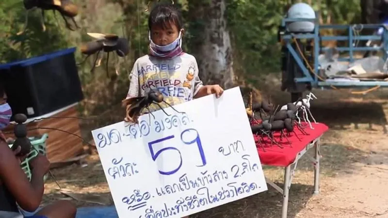 เนื่องจากสถานการณ์ Covid ที่ต้องเผชิญ ทำให้หลายๆครอบครัวต้องเดือดร้อน รวมไปถึงครอบครัวเขาเหล่านี้ แต่พวกเขาเหล่านี้ก็ไม่ย่อท้อ ต้องประดิษฐ์ มดและต่อเพื่อแลกข้าวประทังชีวิต