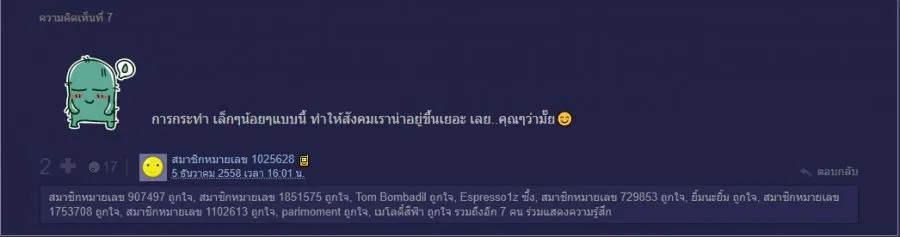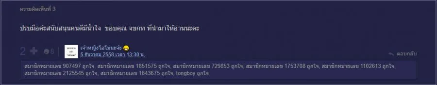 และนี่คือคอมเม้นต์ส่วนหนึ่ง “ปรบมือค่ะสนับสนุนคนดีมีน้ำใจ ขอบคุณ จขกท ที่นำมาให้อ่านนะคะ”