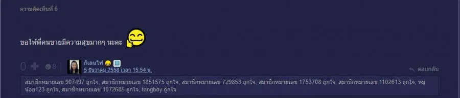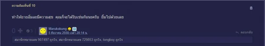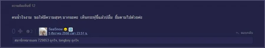 “คนน้ำใจงาม ขอให้มีความสุขๆ มากนะคะ เห็นกระทู้นี้แล้วปลื้ม ยิ้มตามไปด้วยค่ะ”