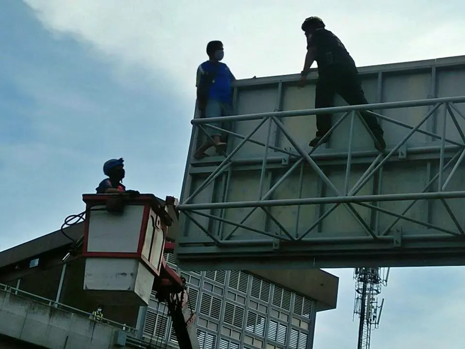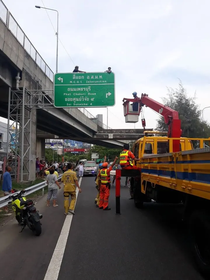 วันนี้ 15.05น. ชาย 1 ราย ได้ปีนป้ายจราจรใกล้เคียงทางลงทางด่วน อสมท. (แยกมารยาทดี) เจ้าหน้าที่ทางด่วน อาสาสมัครมูลนิธิปอเต็กตึ้ง กู้ชีพโรงพยาบาลปิยะเวทและอีกหลายๆหน่วยงานพร้อมกับญาติเข้าเกลี้ยกล่อมจนเป็นผลสำเร็จ และได้นำชายคนดังกล่าวลงมาอย่างปลอดภัย เจ้าหน้าที่ สน. ทางด่วน ได้นำตัวไปสงบสติอารมณ์ที่ สน.มักกะสัน ต่อไป