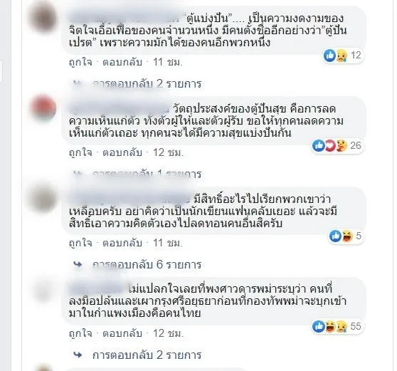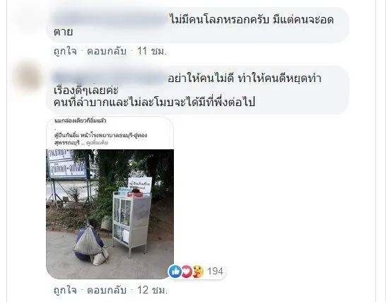 หลายวันนี้เราเห็นภาพงดงามของการแบ่งปัน ตู้แบ่งสุข ตู้ปันสุข ตู้แบ่งปัน ฯลฯ แต่อีกด้านหนึ่ง แต่เราก็เห็นภาพอัปลักษณ์เช่นกัน ณ บางจุดในบางจังหวัด คนกวาดข้าวของในตู้ไปจนเกลี้ยง ไม่เผื่อแผ่ให้คนอื่น แล้วจะทำอย่างไร? สำหรับผู้ให้ ก็คงต้องทำใจ และยังควรเดินหน้าต่อไป เพราะบ้านเมืองยังมีคนเดือดร้อนหนักหนาสาหัสมากมายจริงๆ