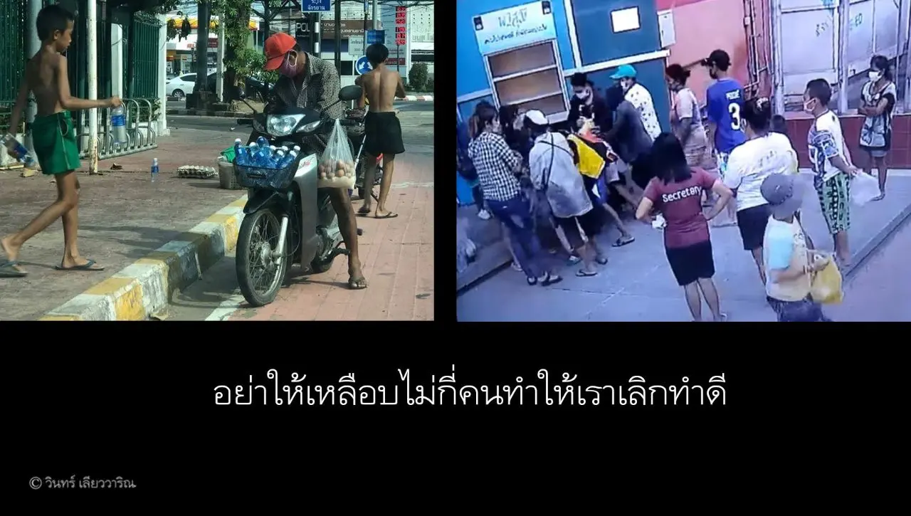 จากภาพที่เห็นแค่นี้ เราตัดสินได้แล้วเหรอครับว่าเขาโลภ ตะกรุมตะกราม ไม่เหลือให้คนอื่น ทั้งที่บางทีคนที่เราเห็นว่าขนไปเยอะ ๆ บ้านเค้าอาจจะอยู่กับ 5-6 คนก็ได้