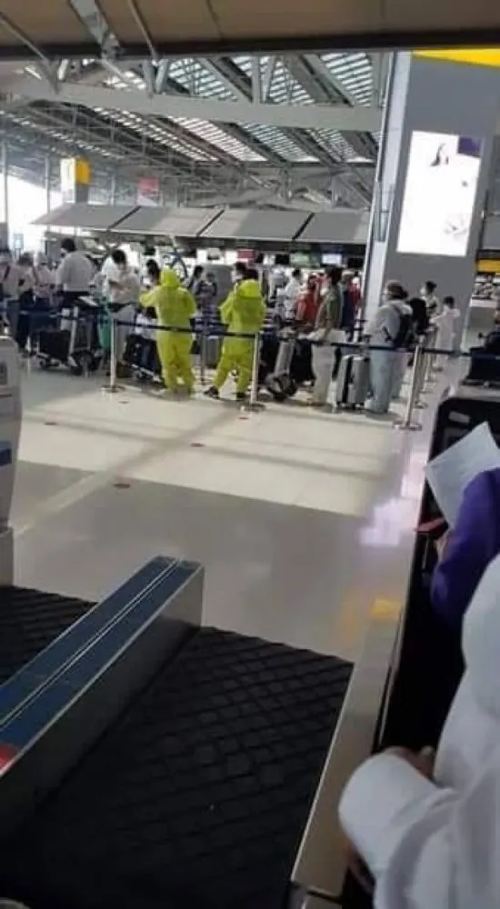 ผู้ใช้เฟซบุ๊กโพสต์ข้อความระบุว่า ชาวจีน 2 คน ผู้โดยสารของเที่ยวบิน MU2804 สุวรรณภูมิ-หนานจิง กำลังรอขึ้นเครื่อง เพื่อเดินทางกลับประเทศ ที่สนามบินสุวรรณภูมิ