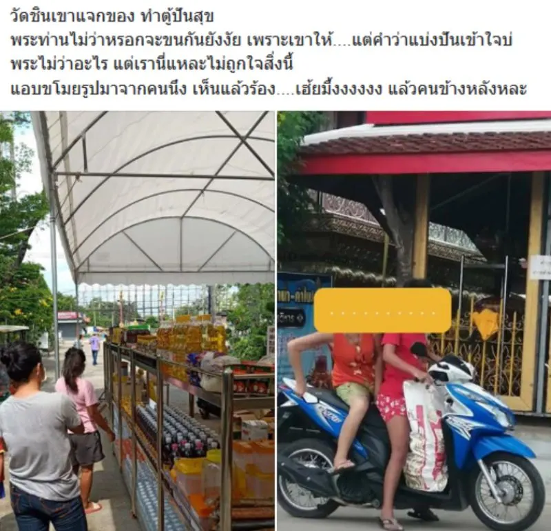 โดยผู้โพสต์ได้ระบุว่า วัดชินเขาแจกของ ทำตู้ปันสุข พระท่านไม่ว่าหรอกจะขนกันยังงัย เพราะเขาให้ แต่คำว่าแบ่งปันเข้าใจบ่ พระไม่ว่าอะไร แต่เรานี่แหละไม่ถูกใจสิ่งนี้ แอบขโมยรูปมาจากคนนึง เห็นแล้วร้อง แล้วคนข้างหลังหละ
