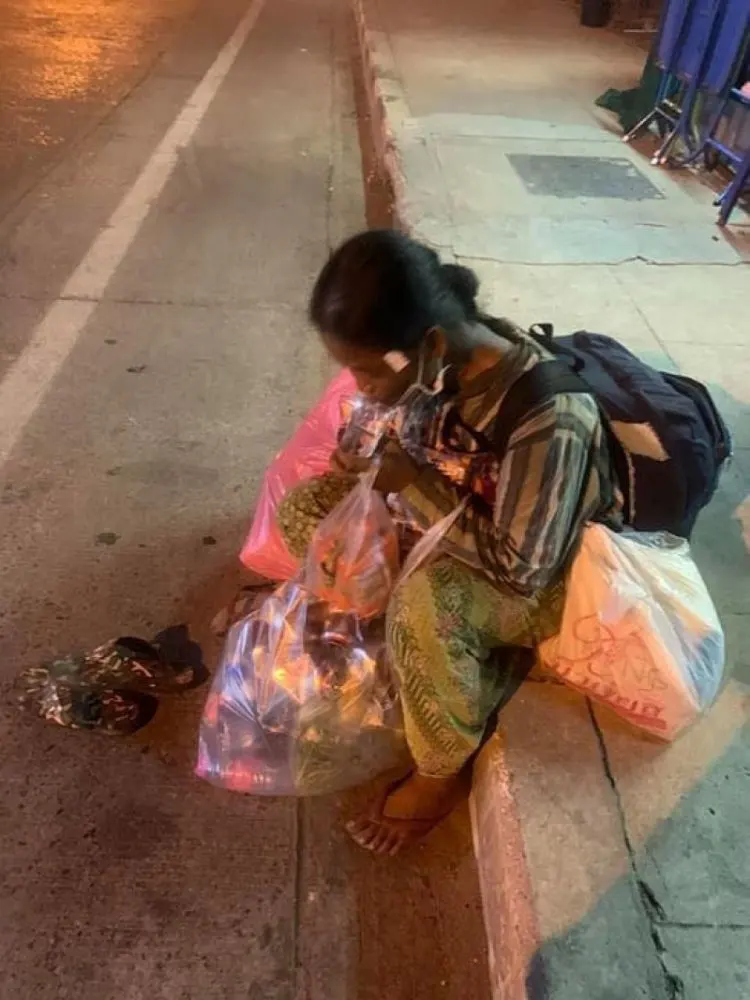 คนเราเลือกเกิดไม่ได้ เค้าเดินมาเหงื่อตก หอบแฮกๆ ตั้งท้องอยู่ 8 เดือนละ บอกโดนไล่มา มีเจ้าถิ่นผู้หญิงตัวไล่มาจากหน้า 7-11 บ้านกอก เห็นเพื่อนบอก ชอบขอเงินคนนั้นคนนี้ทีละ 20 มั่ง 25 มั่ง พอเห็นน้องไปเก็บขวดเก็บกระป๋องก็ไล่มา เดินมาจนถึงหน้าร้านโจ๊ก เลยเอานม เอามาม่า น้ำดื่มให้กิน เอาเงินให้ บอกบ้านอยู่สามเหลี่ยม ถีบจักรยานมาจอดไว้แถวบิ๊กซี เดี๋ยวก็จะถีบกลับ เลยเอารองเท้าให้ใหม่ บอกไม่กล้าใส่ มันสวย 555 จะเอาไว้ใส่ตอนไปล้างห้องน้ำช่วยหลวงพ่อที่วัด น่ารักนะแบบนี้ จำได้ด้วยว่า ต้นเคยแจกผ้าห่มให้ 2 ผืน ห่มกะบุตร ก็ขอให้น้องดูแลตัวเองดีๆนะคะ ผ่านมาเจอพี่ก็จะแบ่งปันให้เรื่อยๆนะคะ สู้ๆๆ