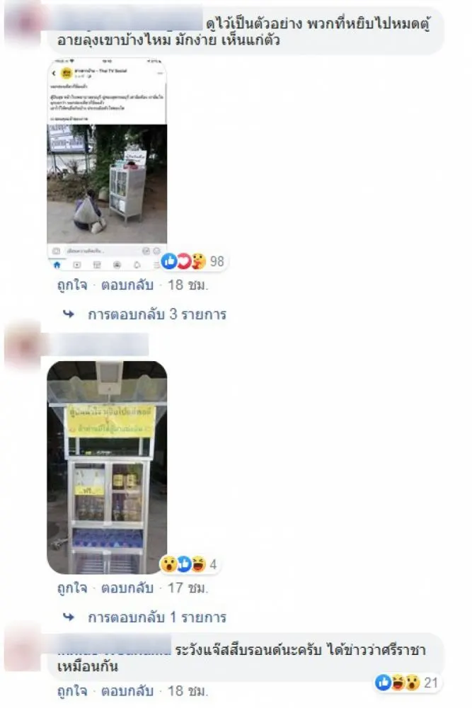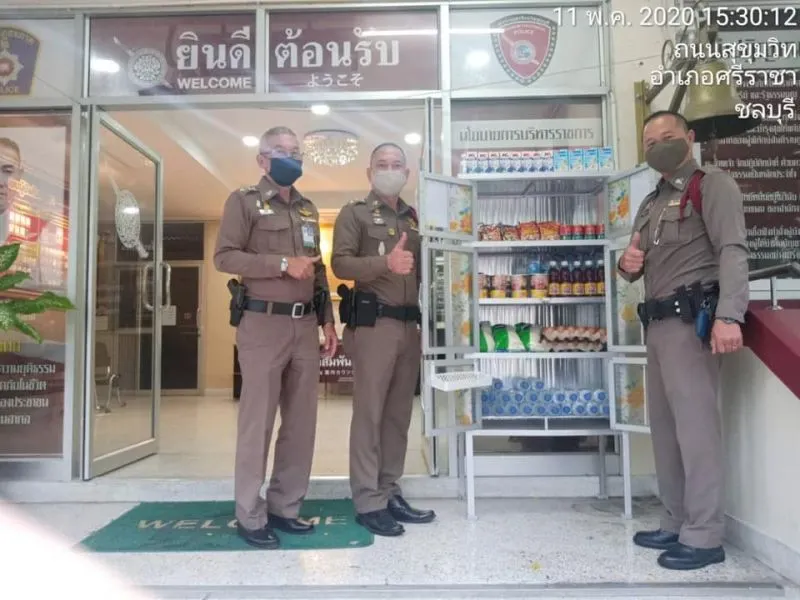 เรียกได้ว่าเป็นอีกหนึ่งเรื่องราวที่น่าชื่นชมอีกเรื่องหนึ่งเลยทีเดียว เมื่อทางตำรวจโรงพัก สภ.ศรีราชา ได้จัดตั้งตู้ปันสุข ไว้ที่ด้านหน้าของ สภ.ศรีราชา ให้ประชาชนที่ต้องการอาหารและน้ำดื่ม สามารถมารับของได้ที่ตู้นี้ ซึ่งแน่นอนว่า ตู้ดังกล่าวที่ตั้งอยู่ที่หน้า สถานนีตำรวจนี้ ต้องไม่มีใครกล้าหยิบเกินอย่างแน่นอน