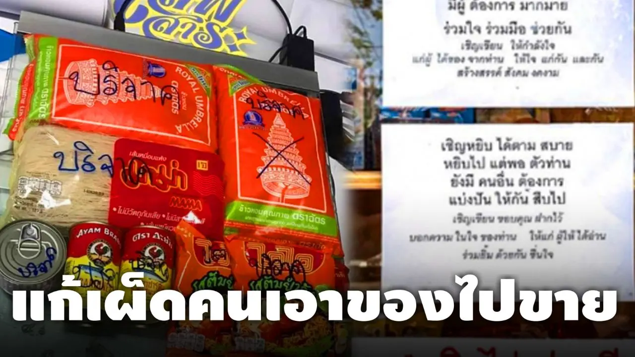 โดยโพสต์ระบุข้อความว่า วิธีแก้ คนนิสัยเสีย มักมากอยากได้ จากตู้แบ่งปัน แล้วเอาไปขายต่อ