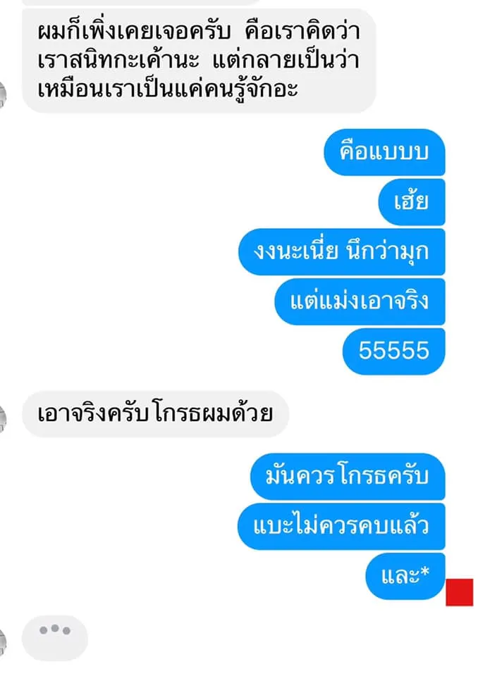 เป็นรุ่นพี่ผมในเฟซบุคผมทักไปขออนุญาตมาลงครับ มันไม่ควรคบต่อละนะ 55555