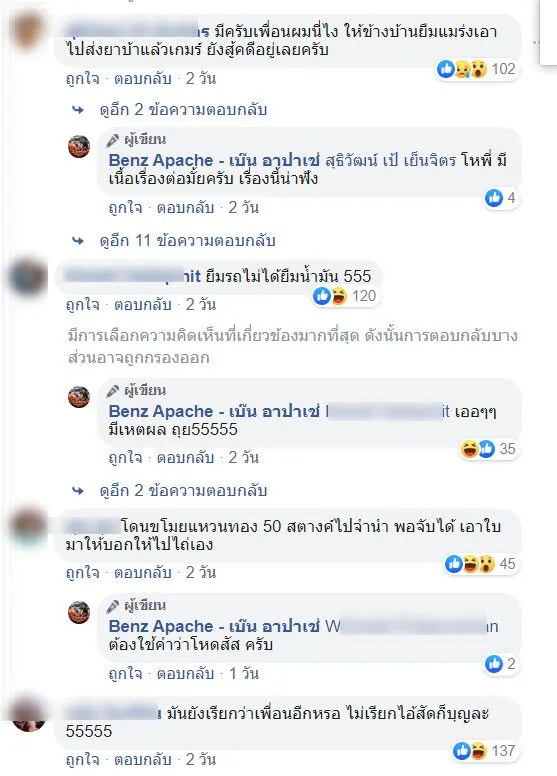 โดยเพจ Benz Apache - เบ๊น อาปาเช่ โพสต์ข้อความระบุว่า "มันมีคนแบบนี้จริงๆหรอครับเนี่ย 555"