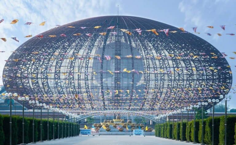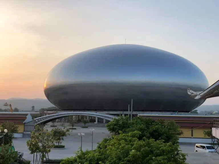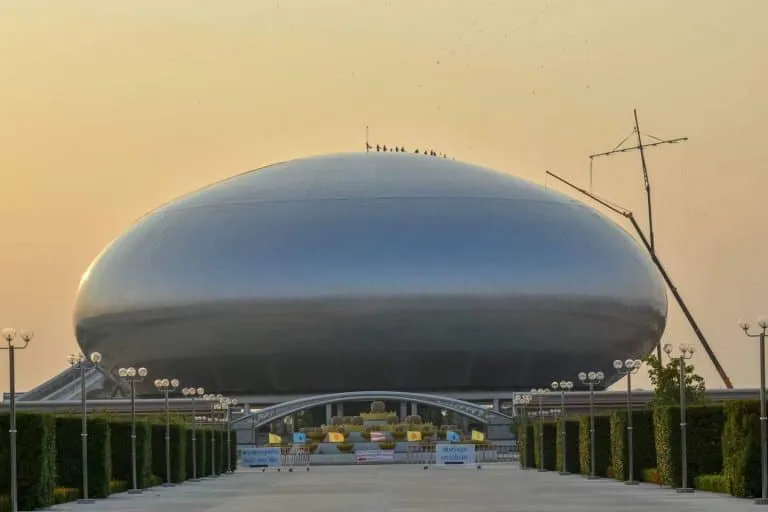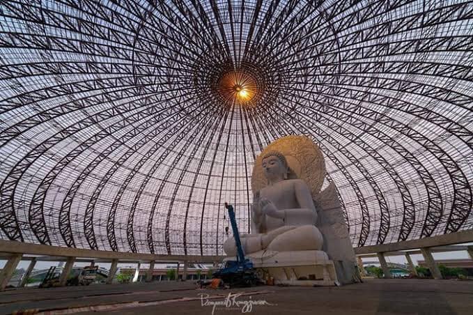 มหาวิหารทรงบาตรคว่ำ สถาปัตยกรรมรูปแบบ sci-fi สุดล้ำยิ่งใหญ่เเห่งเมืองสระบุรี ครอบองค์ปางปฐมเทศนา สูง 50 เมตร กว้าง 90 เมตร วัดพระพุทธแสงธรรม ต.หนองนาก อ.หนองแค จ.สระบุรี
