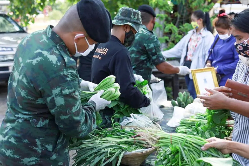 มทบ.13 ดำเนินโครงการ "หน่วยทหารจ่ายตลาด ช่วยเกษตรกรฟื้นฟูเศรษฐกิจ" ในสถานการณ์แพร่ระบาดโรคไวรัสโควิด -19 รับซื้อผลผลิตจากเกษตรกร นายทรงชัย ตังคนาพรชัย เจ้าของสวนแตงโม เลขที่ 1/1 ม.8 ต.สิงห์ อ.บางระจัน จ.สิงห์บุรี จำนวน 500 ก.ก.นำมาเป็นอาหารพิเศษให้กับกำลังพลทหารประจำการ และช่วยเหลือเกษตรกรในพื้นที่ให้มีรายได้ ซึ่งเกษตรกรขอขอบคุณหน่วยที่ให้การสนับสนุนผลผลิต ในครั้งนี้