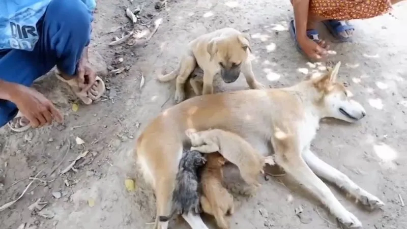 ที่บ้านหลังหนึ่งในพื้นที่ หมู่ 6 บ้านหนองไฮ ต.โพธิ์ทอง อ.โพนทอง จ.ร้อยเอ็ด เป็นบ้านของ นายลัด จันทร์เพชร อายุ 56 ปี และ นางติ๋ม จันทร์เพชร อายุ 55 ปี สองสามีภรรยาเจ้าของสุนัข พบสุนัขเพศเมีย ชื่อตี้ อายุปีกว่าๆ ขนสีนวล กำลังเลี้ยงลูกแมวกำพร้าโดยยอมให้ลูกแมวกำพร้าดูดนม รักและดูแลลูกแมวกำพร้าอย่างแม่แท้ๆ