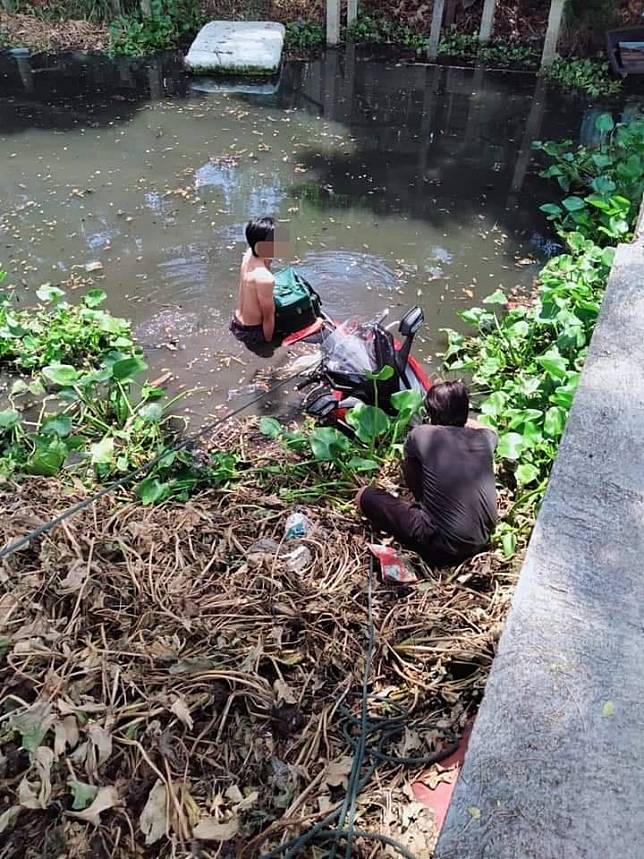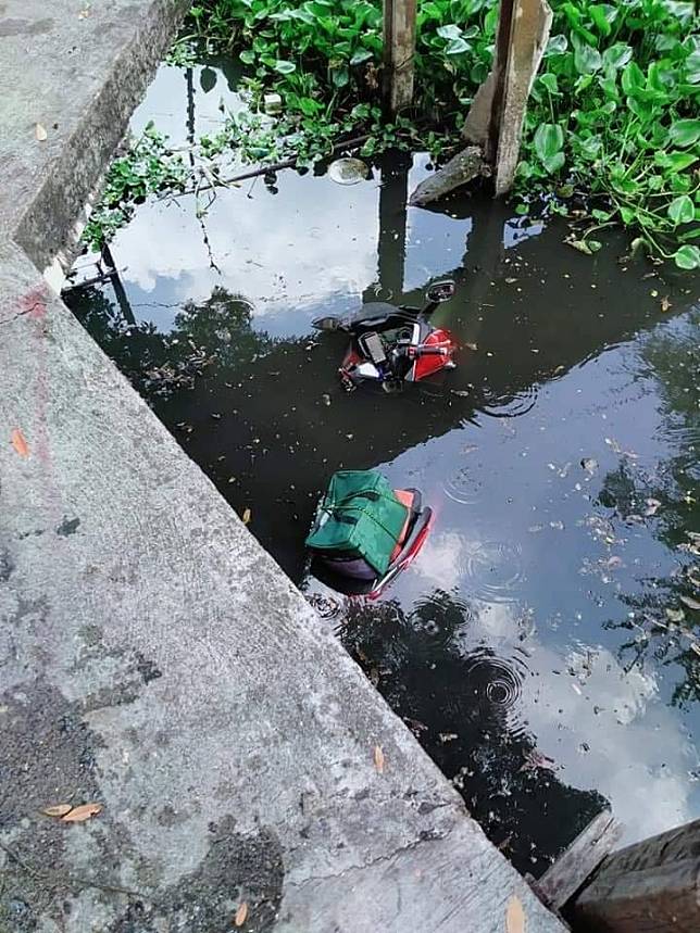 น่าเห็นใจ หนุ่มขี่รถจักรยานยนต์ส่งอาหารพลาดท่าขี่รถจักรยานต์ยนต์ตกคลองย่านคันนายาว เนื่องด้วยเส้นทางที่แคบประกอบกับเป็นทางที่มีลักษณะเป็นสะพานปูนยาว ถึงจังหวะหักเลี้ยวคาดว่าพลาดทำให้รถตกลงไปในคลอง