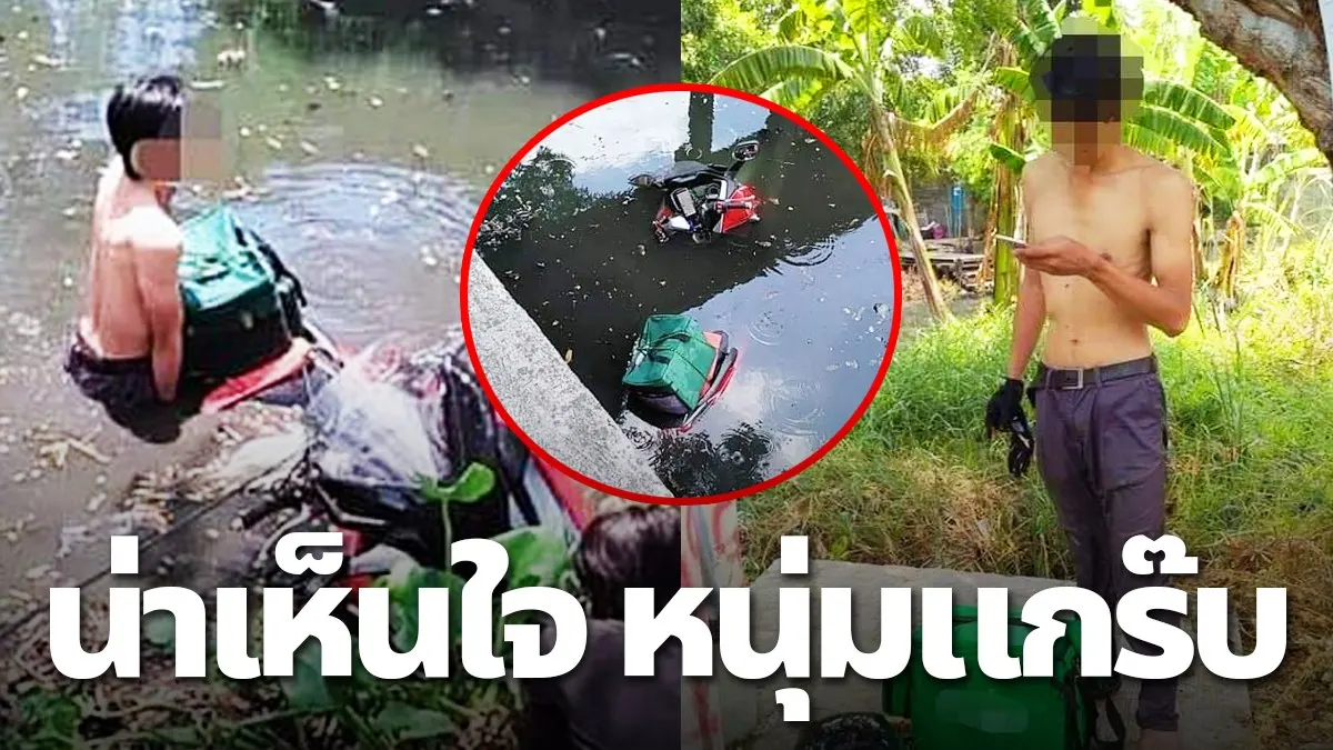 น่าเห็นใจ หนุ่มแกร็บไม่ชินทาง ขี่รถจักรยานต์ยนต์ตกคลอง