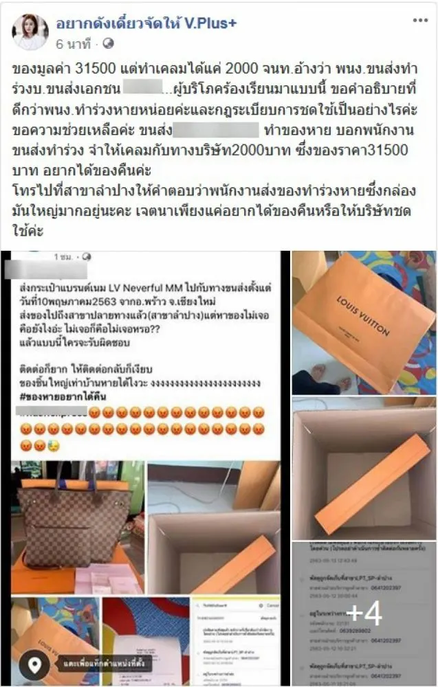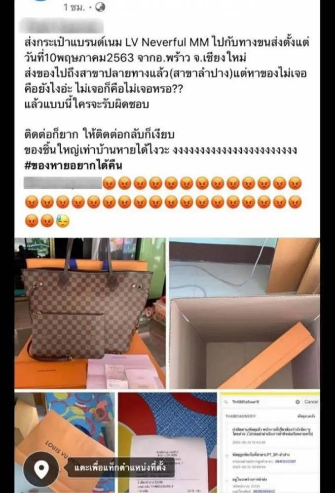 กลายเป็นอีกเรื่องราวที่ได้กลายเป็นประเด็นในโลกโซเชียล เมื่อได้มีเพจเฟซบุ๊ค อยากดังเดี๋ยวจัดให้ V.Plus+ ได้โพสต์เรื่องราวของหญิงสาวรายหนึ่งที่ได้ใช่บริการขนส่งรายหนึ่ง โดยตัวเธอนั้นได้ส่งกระเป๋าแบรนด์เนมยี่ห้อหนึ่งที่มีมูลค่าถึง 31500 บาท โดยจัดส่งจากกรุงเทพไปยังลำปาง แต่ปรากฏว่าของถึงที่เก็บของลำปางแล้ว แต่ทางเจ้าหน้าที่กลับทำของหาย