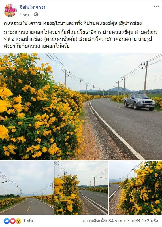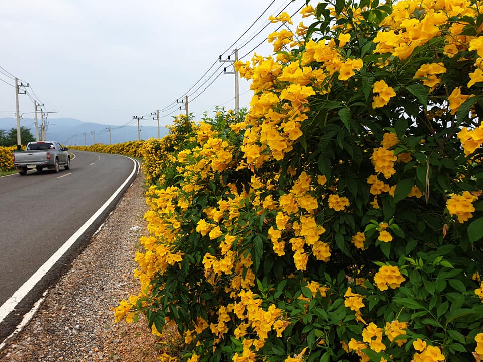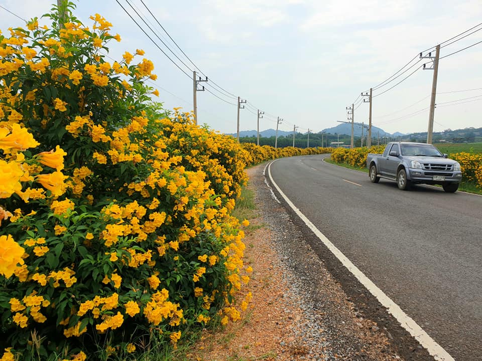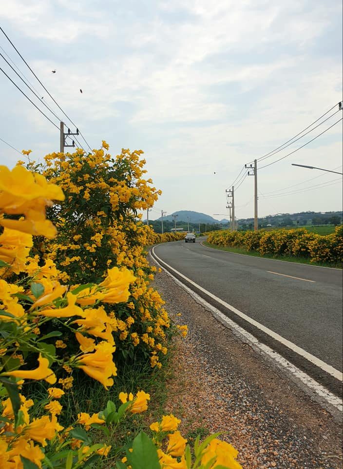 ถนนสายดอกไม้ทองอุไรบานสะพรั่ง ที่โคราชริมสองข้างทาง ขับรถเพลินๆ ถ่ายรูปสวยๆ