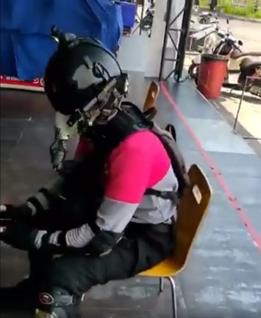 เรียกได้ว่าเป็นอีกหนึ่งไอเดียในการป้องกันตัวแบบมิดชิด โดยหนุ่มฟู้ดแพนด้ารายหนึ่งได้ออกแบบหมวกกันน๊อคมีลักษณะคล้ายๆกับหมวกนักบินโมเดลหน้ากากอ็อกซิเจนมีการต่อท่อหายใจ บอกเลยว่าไปรับออเดอร์ร้านไหนสร้างความฮือฮาให้กับผู้พบเห็น จะเป็นอย่างไรไปชมกันเลยจ้า