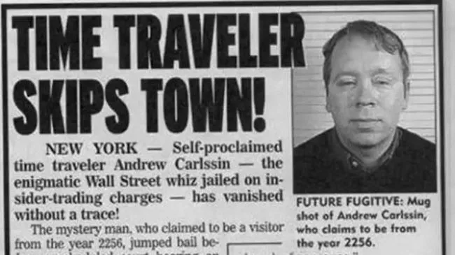 หลังจากที่แอนดรูว์ถูกจับ เขาอ้างว่าได้รับข้อมูลเหล่านี้มาจากอนาคต ซึ่งตัวเขาเองบอกว่า ตัวเองเดินทางมาจากอนาคตในปี ค.ศ. 2256 ด้วยเครื่องไทม์แมชชีน หลังจากนั้นแอนดรูว์ได้รับการประกันตัวโดย “ชายลึกลับ” ด้วยเงินมากถึง 1 ล้านหรียญ (33 ล้านบาท) ก่อนที่เขาจะหายตัวไปอย่างไร้ร่องรอยก่อนวันนัดศาลเพื่อขึ้นพิจารณาคดีเพียงไม่นาน