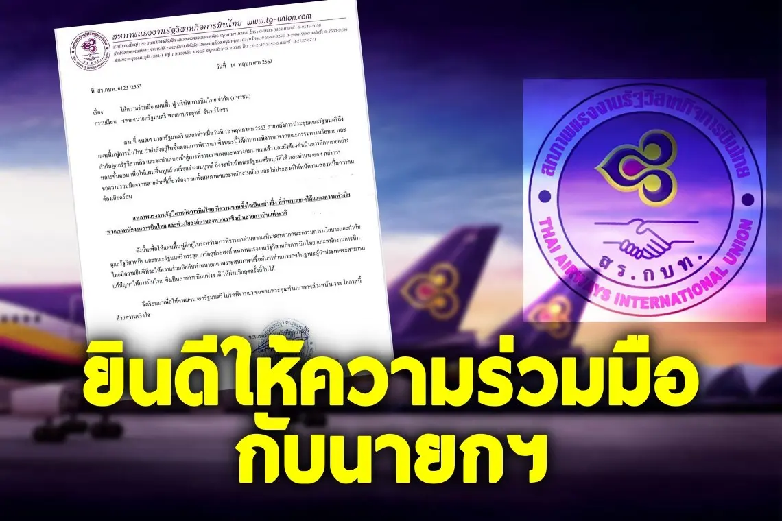 สหภาพแรงงานรัฐวิสาหกิจการบินไทยร่อนจดหมายถึงนายกฯ แจง ยินดีให้ความร่วมมือกับท่านนายกฯ