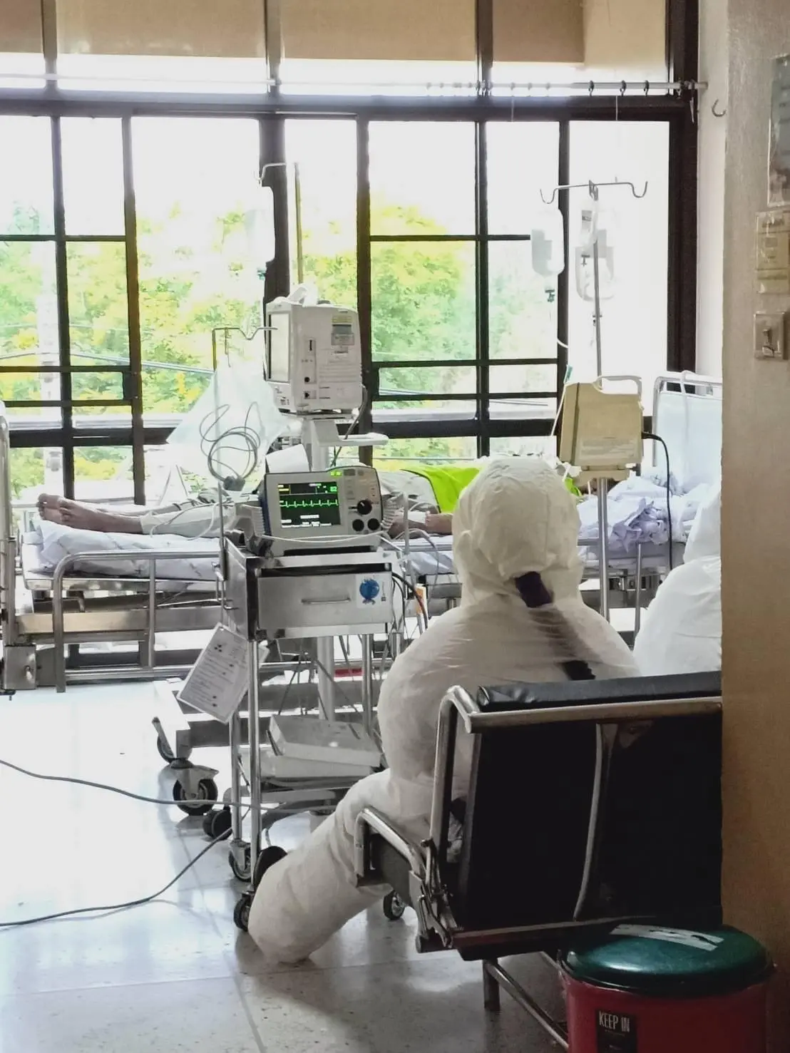 นอกจากหอผู้ป่วยที่ดูแลผู้ป่วยที่พบเชื้อโควิดแล้ว ยังมีหอผู้ป่วย PUI (Patient under investigation) หรือผู้ป่วยเข้าข่ายเฝ้าระวัง ซึ่งทำงานหนักต่อเนื่องมาไม่ได้หยุดเนื่องจากมีผู้ป่วยต้องสงสัยที่ต้องเฝ้าระวังทุกวัน ซึ่งในระหว่างที่รอผลการตรวจเชื้อ การดูแลผู้ป่วยกลุ่มนี้ก็ต้องใช้มาตรการการป้องกันก็ไม่ต่างจากผู้ป่วยโควิดเลยแม้ว่าผู้ป่วยกลุ่มนี้ส่วนใหญ่จะไม่พบเชื้อก็ตาม