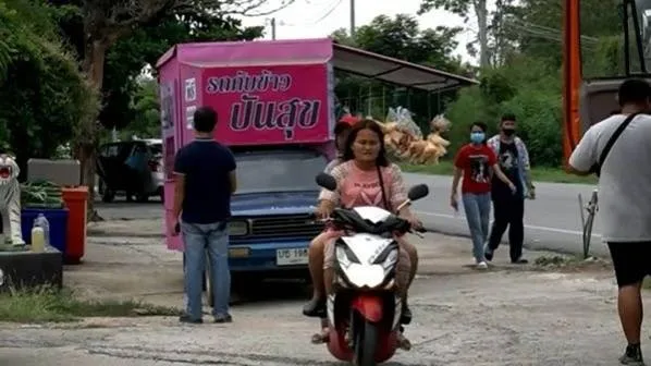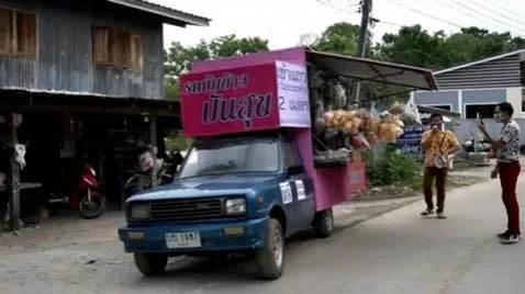 วันที่ 16 พฤษภาคม 2563 นายจักรินทร์ เถระปัญญา เจ้าของร้านบ้องคาเฟ่ กาแฟสด บ้านล่อมอ้ายหมอง ตำบลหนองไผ่แบน อำเภอเมือง จังหวัดอุทัยธานี และพนักงานในร้าน ได้นำรถเก่าในร้านมาใส่หลังคาดัดแปลงเป็น รถพุ่มพวงสีชมพูสด พร้อมตั้งชื่อว่า "รถแบ่งปันสุข"