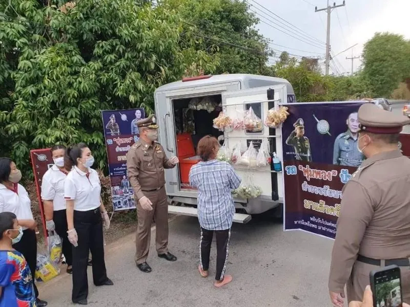 ตำรวจชัยนาท ใจบุญ เปลี่ยนรถสายตรวจเป็นพุ่มพวงแจกผักชาวบ้านฟรี