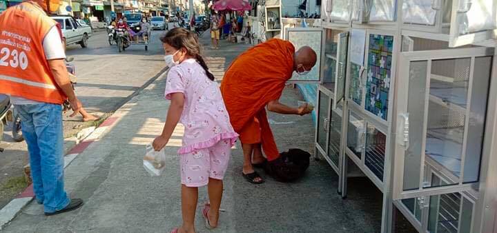 จัดไปทั้งย่าม หลวงพ่อนำอาหารจากการบิณฑบาตมาใส่ตู้ปันสุข “มาเอาไปกินนะโยม”