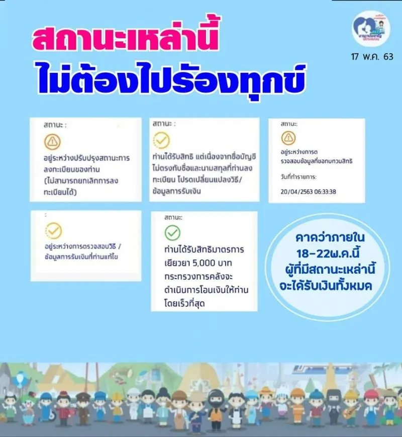 5 สถานะนี้ไม่ต้องไปร้องทุกข์ให้เสีนเวลา 18 - 22 พฤษภาคม 63 นี้เงินเข้าแน่นอน