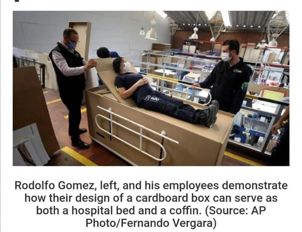 จากการระบาดชองโรคโควิด19 ที่ใน ทวีปอเมริกา - ยุโรป จนทำให้มีผู้ติดเชื่อมากถึง 1.5 กว่าคน และเสียชีวิตเกือยแสนคนแล้วนั้น จนทำให้ต้องสร้างเตียง และโลงศพเพิ่มขึ้นและไม่เพียงพอในการรองรับ