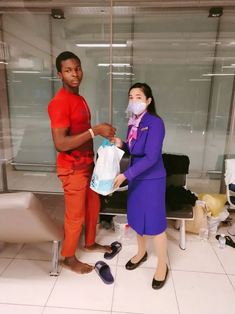 แอร์สาว หอบอาหารเต็มมือ เข้าช่วยเหลือผู้โดยสารไนจีเรีย หลังตกค้างอยู่สนามบิน 2 เดือนแล้ว