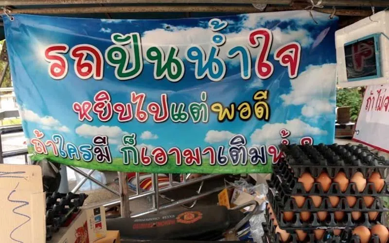 นายสุรเชษฐ์ เทพถนอม อายุ 61 ปีน้าชายของ น.ส.สุวรรณี เล่าให้ฟังว่า ตนนำเงินเยียวย า ที่รัฐบาลให้มา 5000 บาท เป็นทุนตั้งต้นในการแบ่งปันเพื่อจะให้คนอื่นมาร่วมกันแบ่งเบาภาระความเดือดร้อนของชาวบ้าน แต่ก็ไม่เป็นไปตามที่คิด เพราะมีผู้เดือดร้อนมากกว่าผู้ให้แต่หากมีคนมาร่วมกันแบ่งปันก็ทำต่อได้เรื่อยๆ แต่ไม่ขอรับเป็นเงิน อยากได้เป็นสิ่งของที่สามารถแจกได้เลยเพื่อความสบายใจของทุกคน