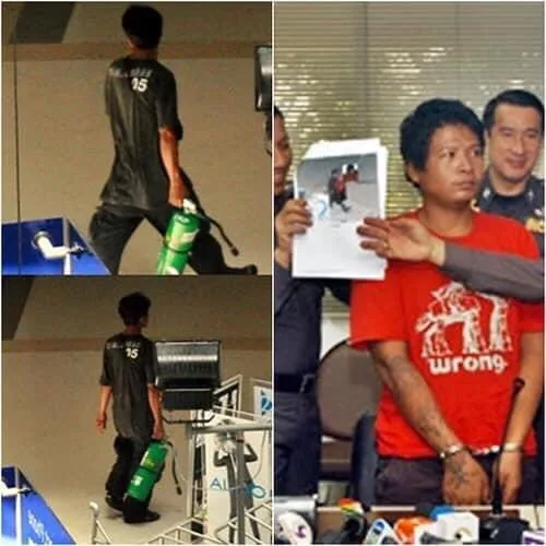 แต่ ศาลทุกชั้น พิจารณาแล้วว่า ถังในมือ คือ ถังดับเพลิง จึงปล่อยตัว