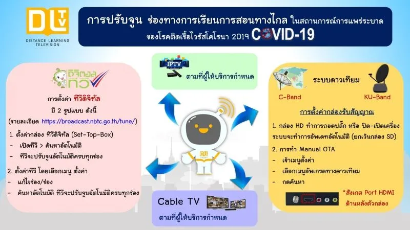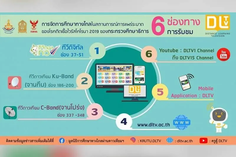 เมื่อวันที่ 18 พฤษภาคม มีรายงานว่า เพจเฟซบุ๊กมูลนิธิการศึกษาทางไกลผ่านดาวเทียม ในพระบรมราชูปถัมภ์ DLTV ได้เผยแพร่ช่องทางในการรับชม DLTV การจัดการศึกษาทางไกลในสถานการณ์การแพร่ของ co vid19 ของกระทรวงศึกษาธิการ ซึ่งเกิดจากความร่วมมือระหว่างกระทรวงศึกษาธิการ มูลนิธิการศึกษาทางไกลผ่านดาวเทียม ในพระบรมราชูปถัมภ์ และสำนักงานคณะกรรมการกิจการกระจายเสียง กิจการโทรทัศน์ และกิจการโทรคมนาคมแห่งชาติ