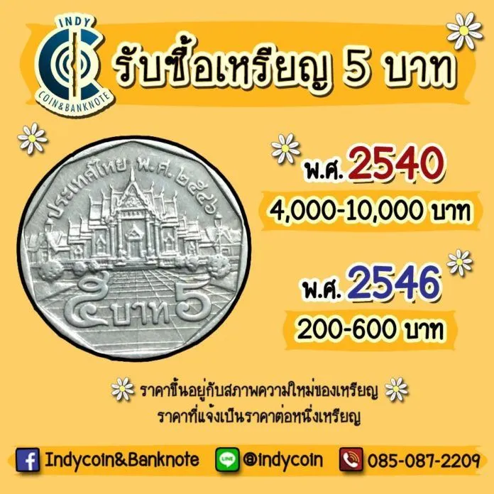 ร้านดังประกาศรับซื้อเหรียญ 5 บาทปีเก่า สูงสุดเหรียญละ 10,000 บาท