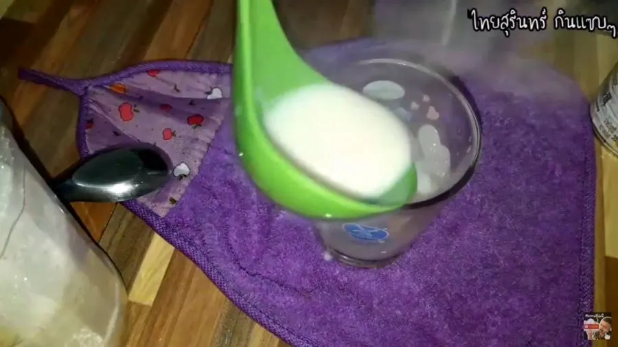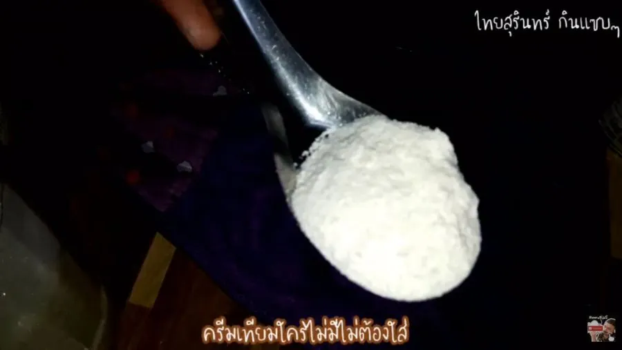 5. ใส่ครีมเทียมลงไป คนให้เข้ากันดี
